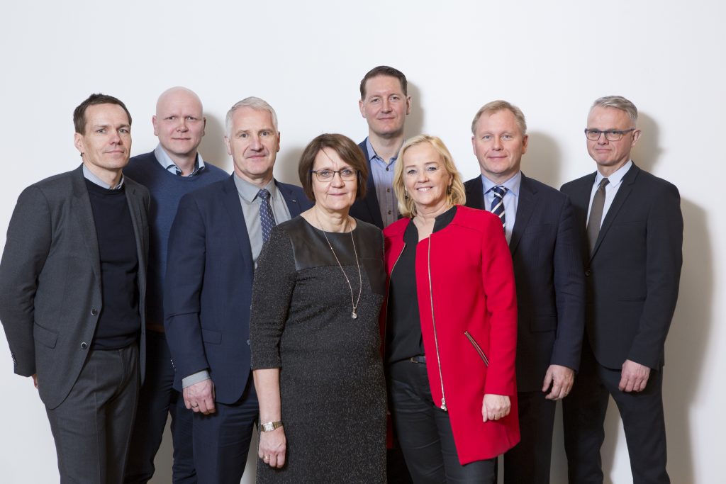 Mynd: Ný stjórn SVÞ, frá vinstri Jón Björnsson, Kjartan Örn Sigurðsson, Jón Ólafur Halldórsson, Margrét G. Flóvens, Árni Stefánsson, Margrét Sanders, Ari Edwald og Andrés Magnússon, framkvæmdastjóri SVÞ.