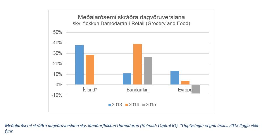 Meðalarðsemi skráðra dagvöruverslana skv. iðnaðarflokkun Damodaran (Heimild: Capital IQ). *Upplýsingar vegna ársins 2015 liggja ekki fyrir.
