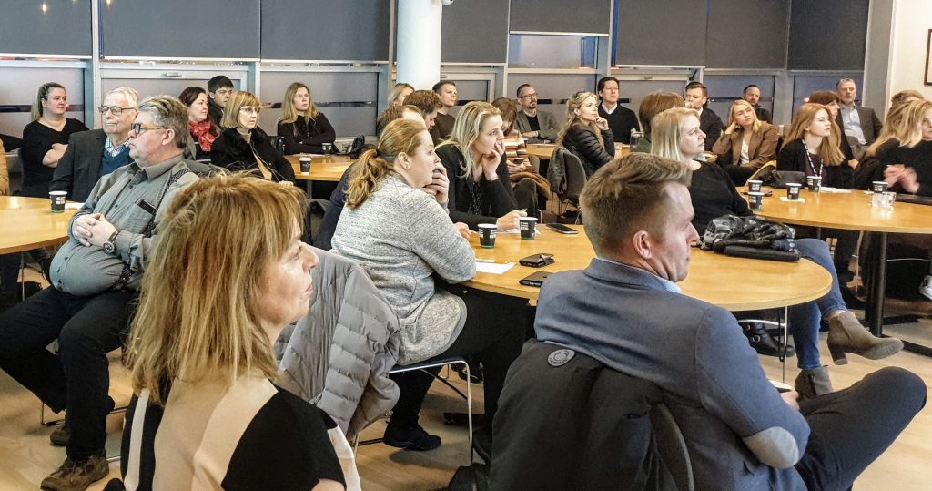Fullt var út úr dyrum á fyrirlestri Berglindar Ragnarsdóttur, stjórnendaráðgjafa og þjónustuhönnuðar hjá CoreMotif þriðjudaginn 18. febrúar sl. Í einstaklega fróðlegum fyrirlestri fór Berglind yfir helstu atriði og ferli hönnunarhugsunar (e. design thinking) og kortlagningu notendaupplifunar (e. journey mapping). Hún lagði áherslu á að hlusta á notandann og hanna út frá hennar þörfum. Hún deildi líka með okkur fjölmörgum dæmum um áhugaverð verkefni, lausnir og árangur í tengslum við efnið.
