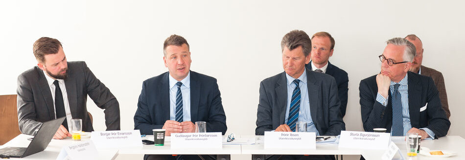 Forystufólk úr atvinnulífinu fundaði í gær með Guðlaugi Þór Þórðarssyni utanríkis- og þróunarsamvinnuráðherra um fríverslunarviðræður Íslands, Noregs og Liechtenstein við Bretland. Samtök atvinnulífsins boðuðu til umræðnanna að ósk Guðlaugs Þórs. Brýnt er að samkomulag náist um nýjan fríverslunarsamning áður en Bretland hverfur úr EES samningnum, sem verður að óbreyttu þann 31. janúar næstkomandi.
