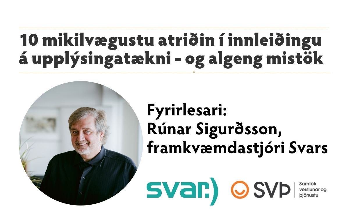 Fyrirlesari er Rúnar Sigurðsson, framkvæmdastjóri Svars